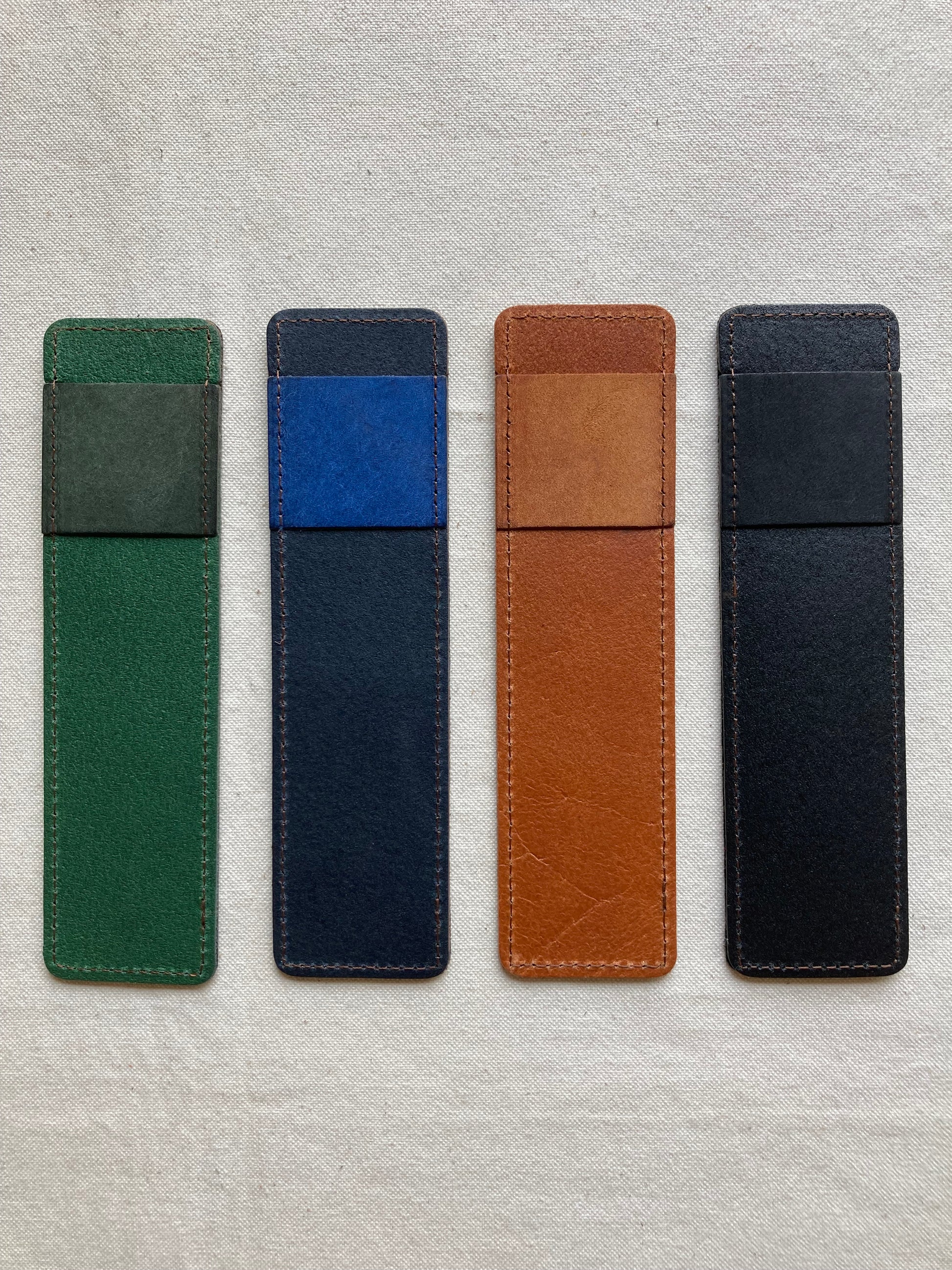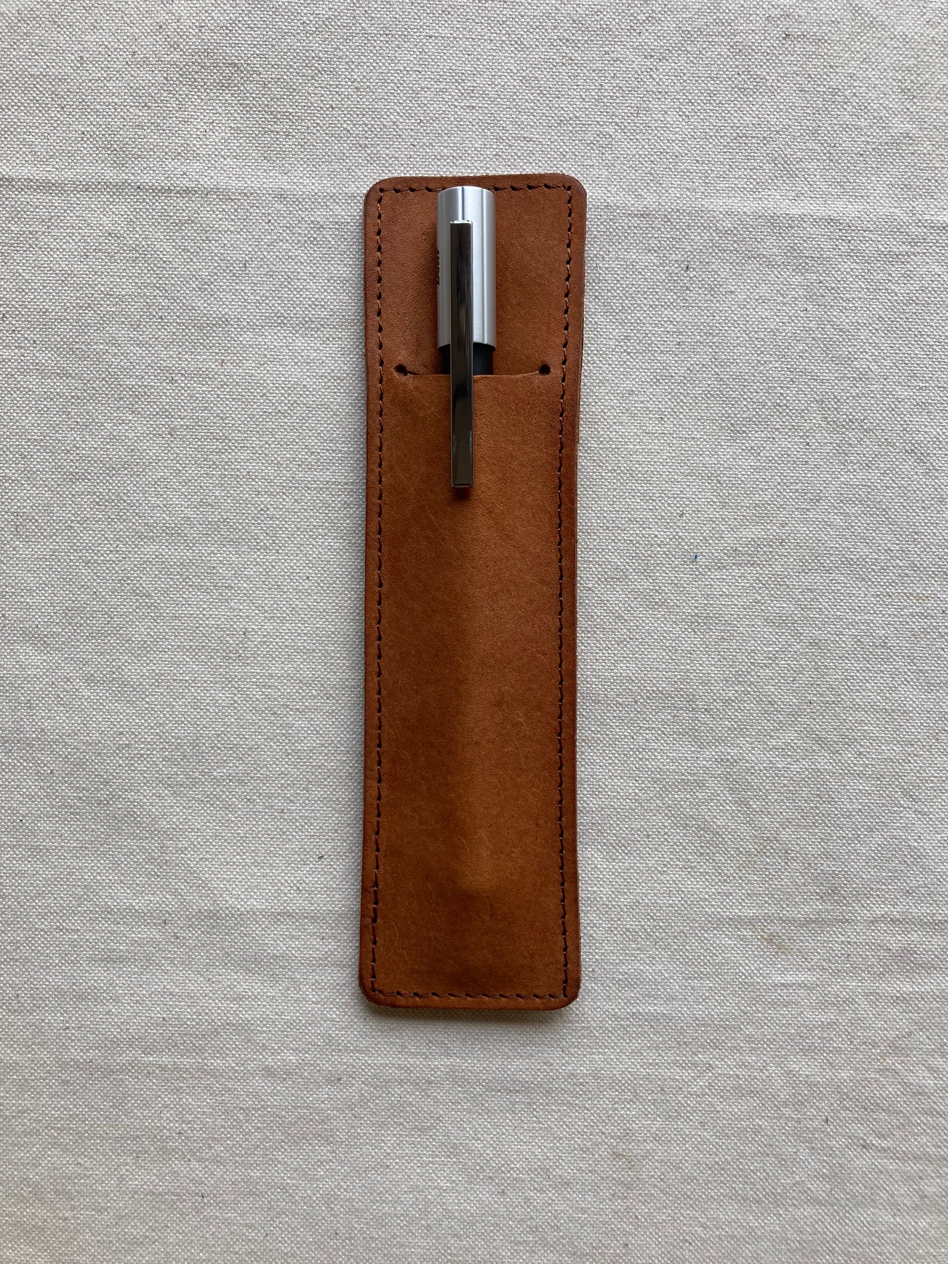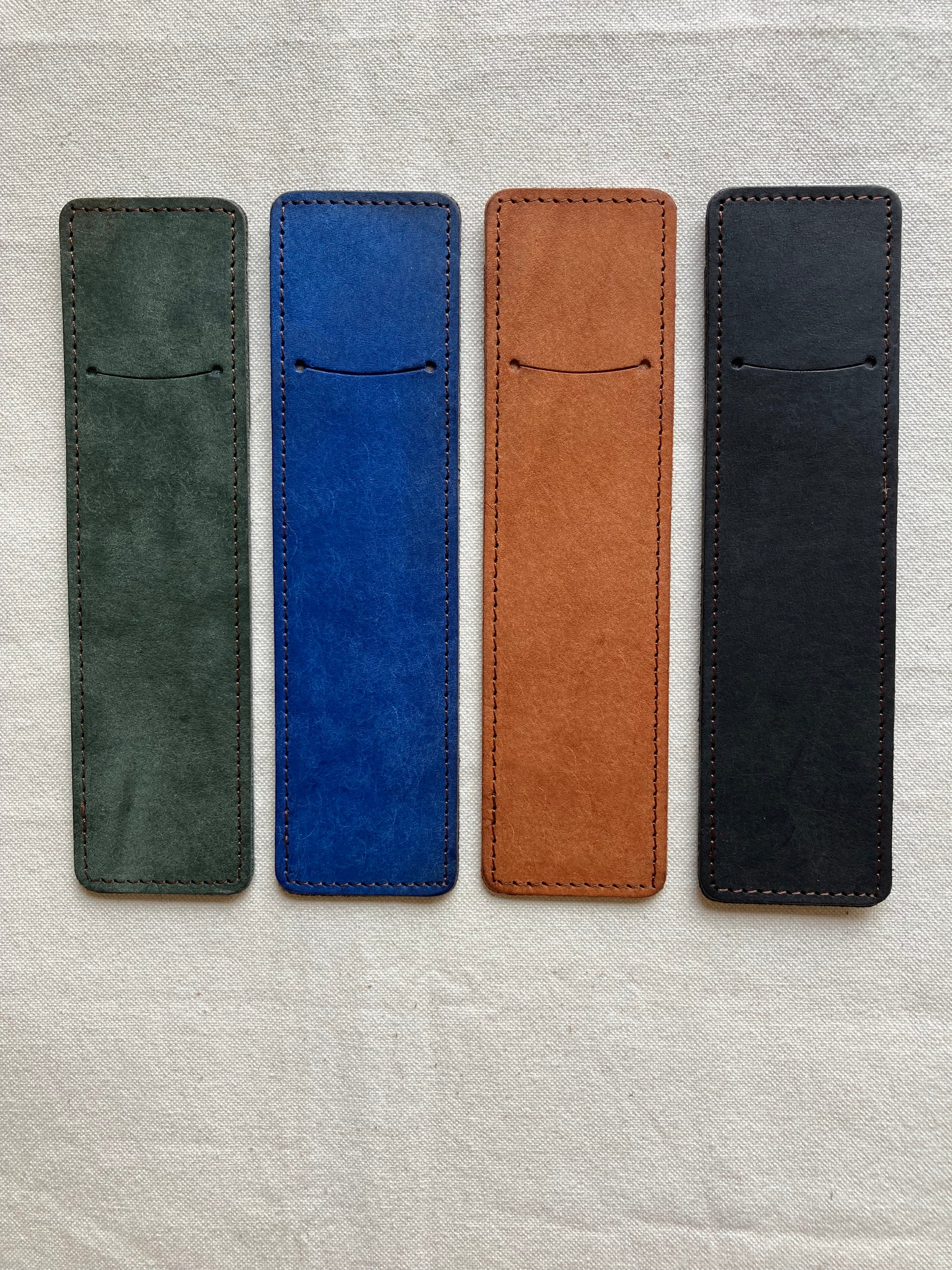 筆記具の1本差しペンケース。裏面に帯が付いていますのでクリップを引っ掛けたり、定規を差し込んで保管出来ます。