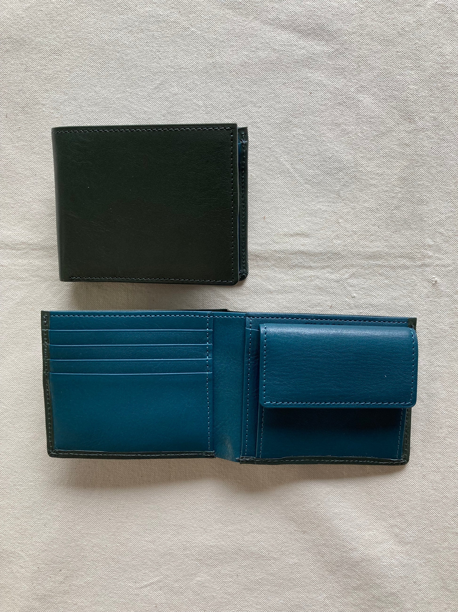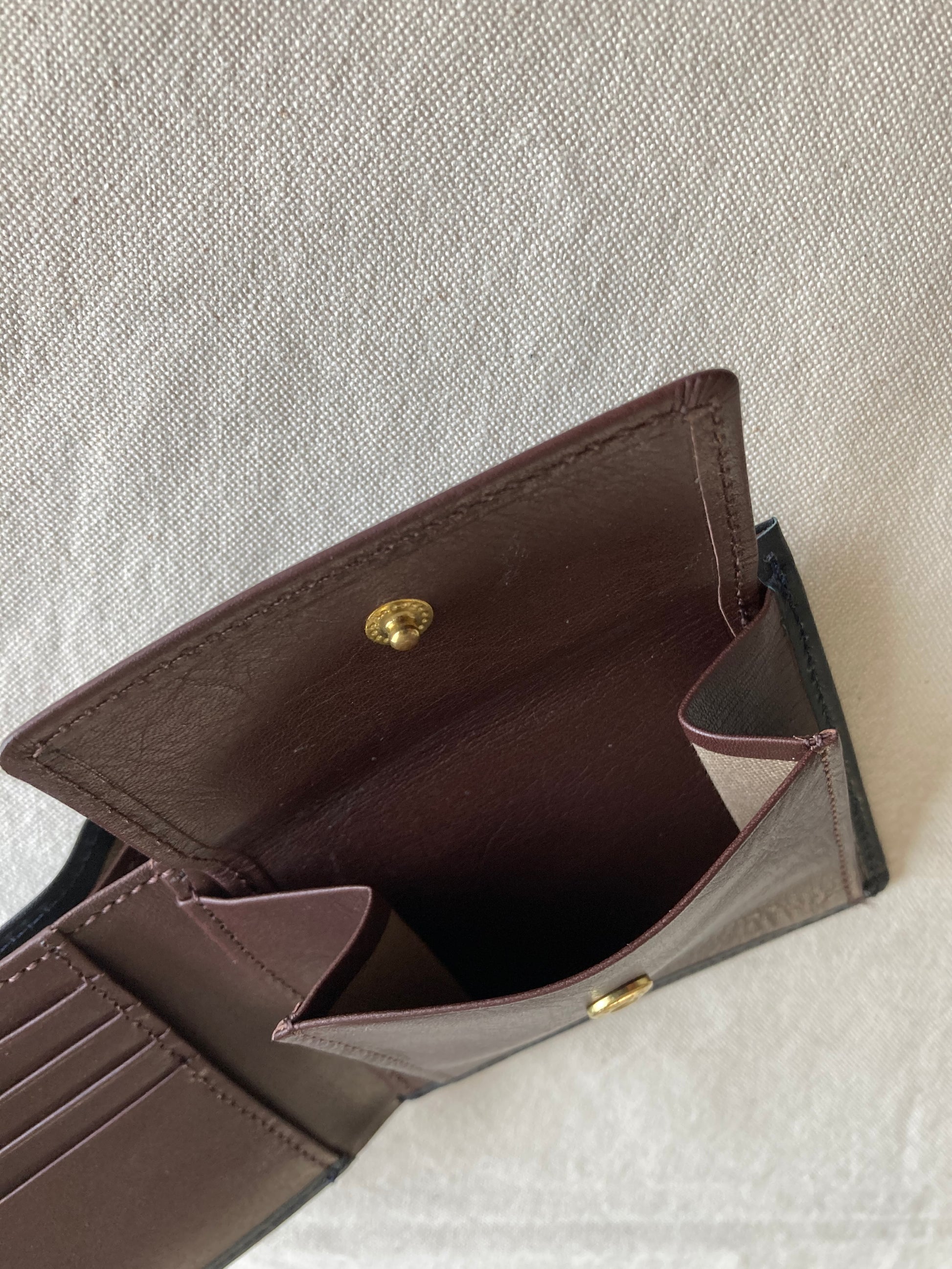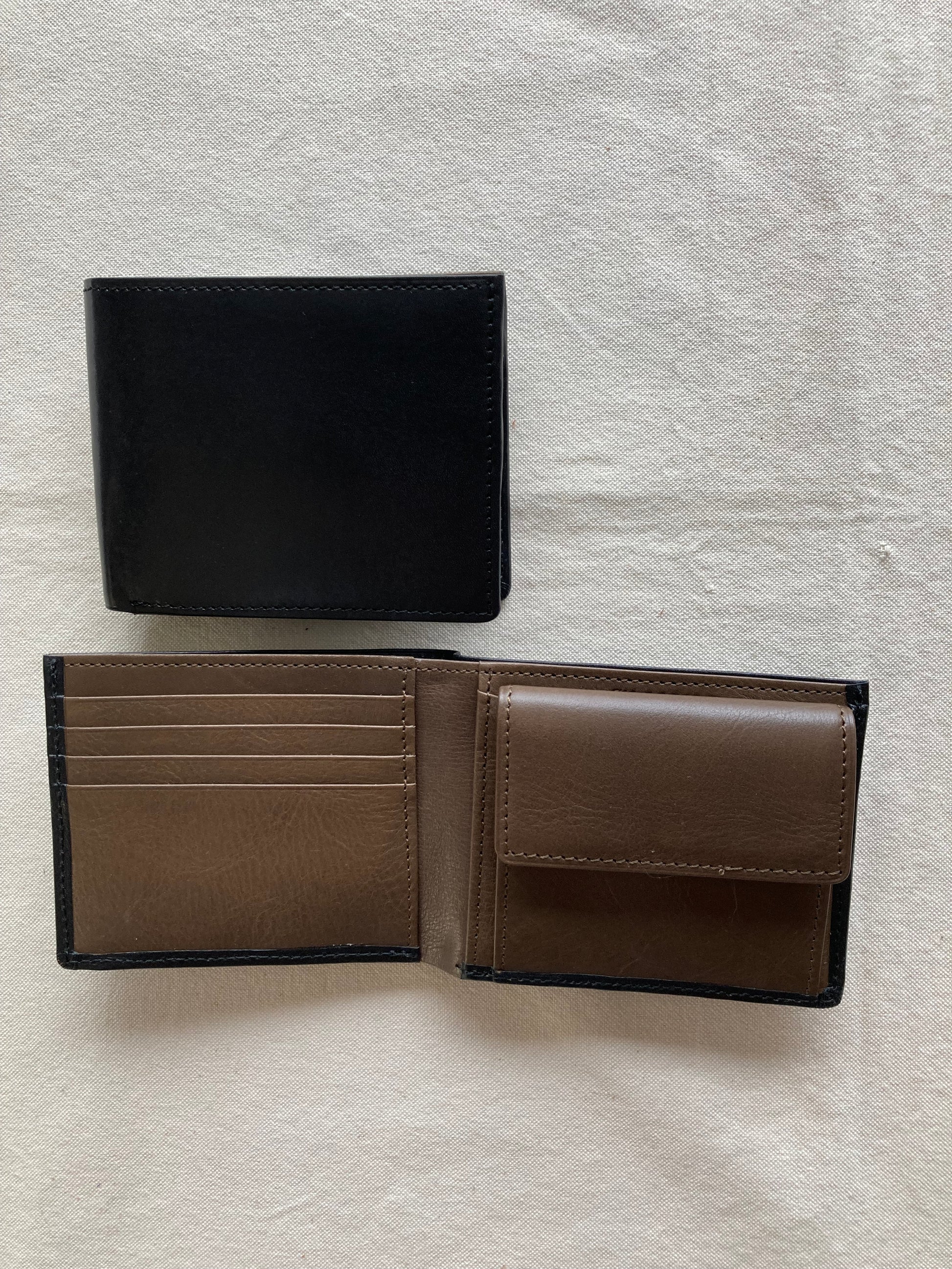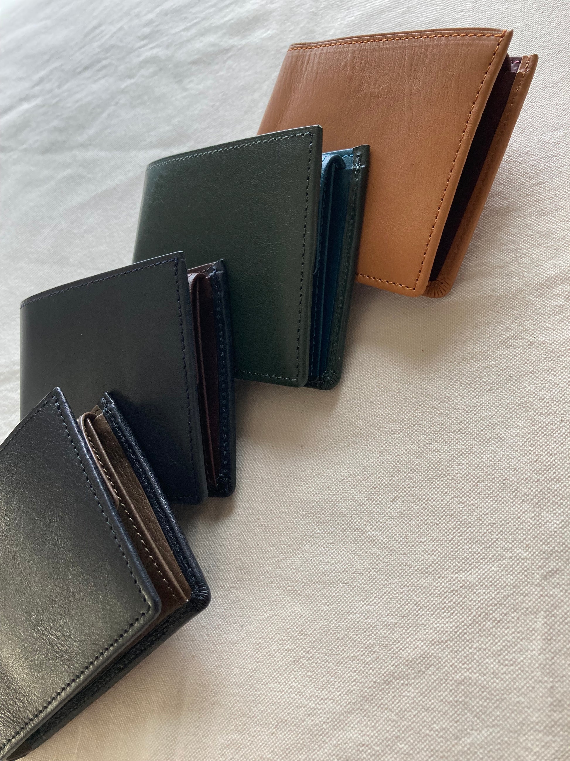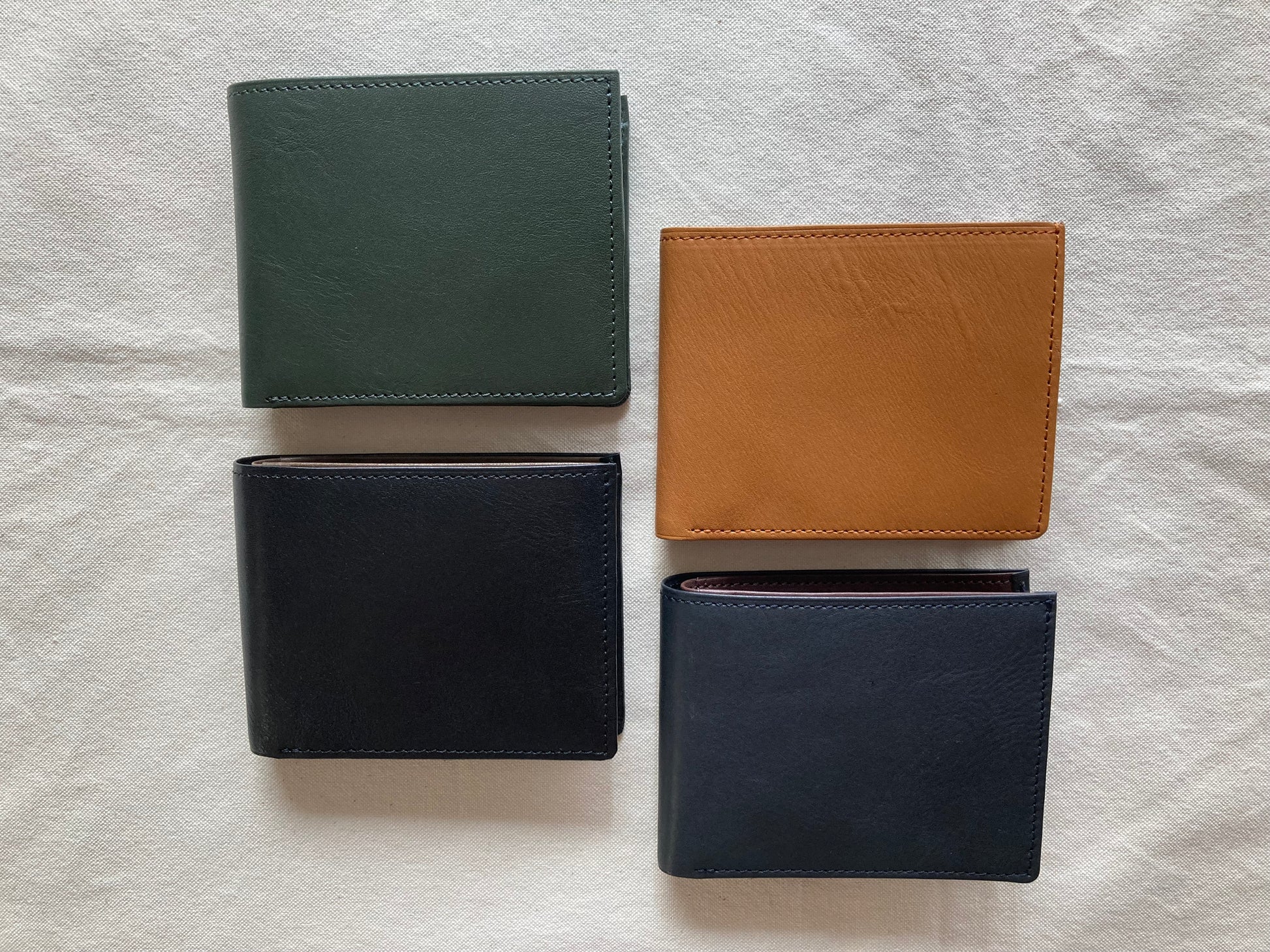 シンプルかつオーソドックスなデザインで、開いた左側にカード4段、右側はコインポケットとなっております。札室には仕切りがあり金種により仕分けや、紙幣とレシートに分けて保管出来ます。