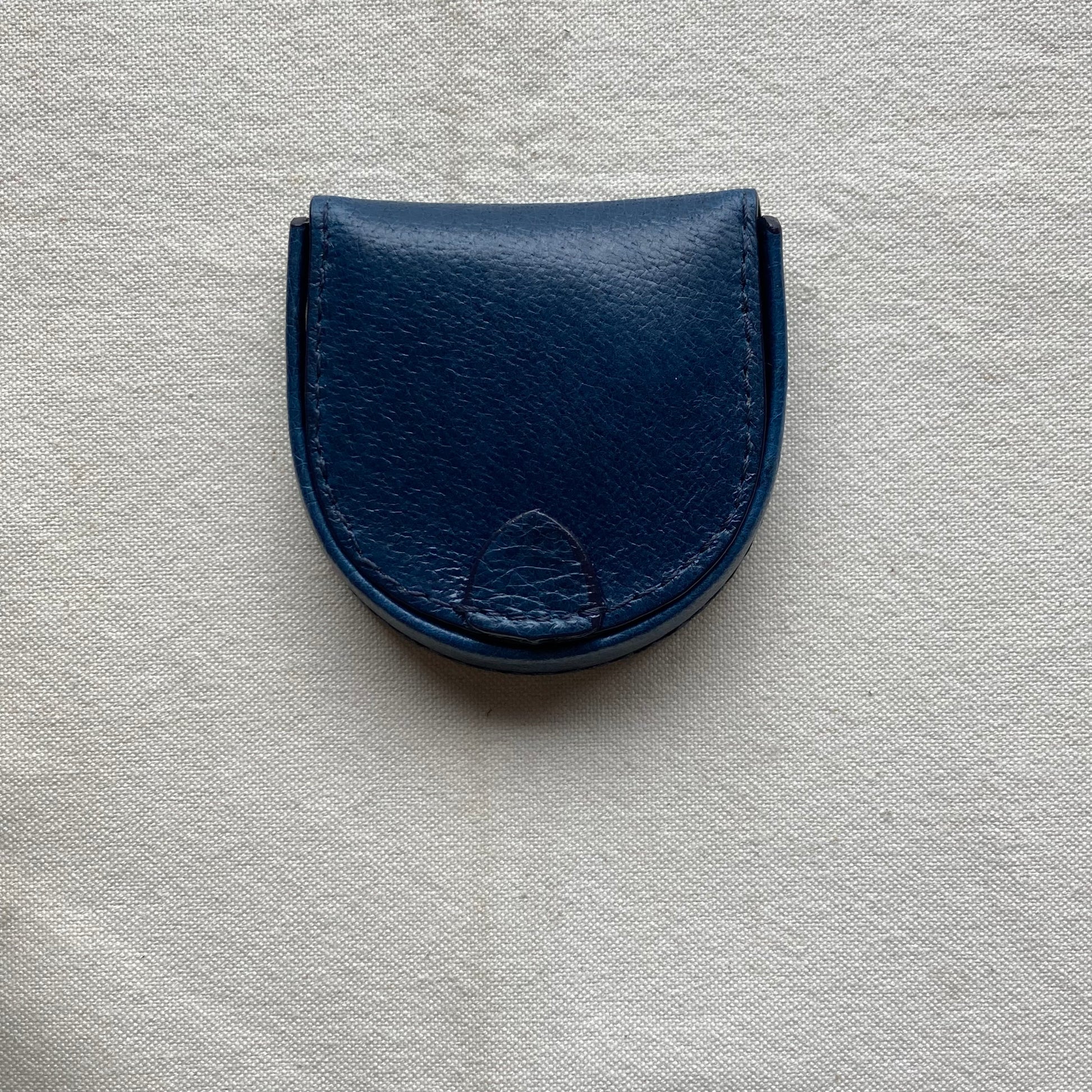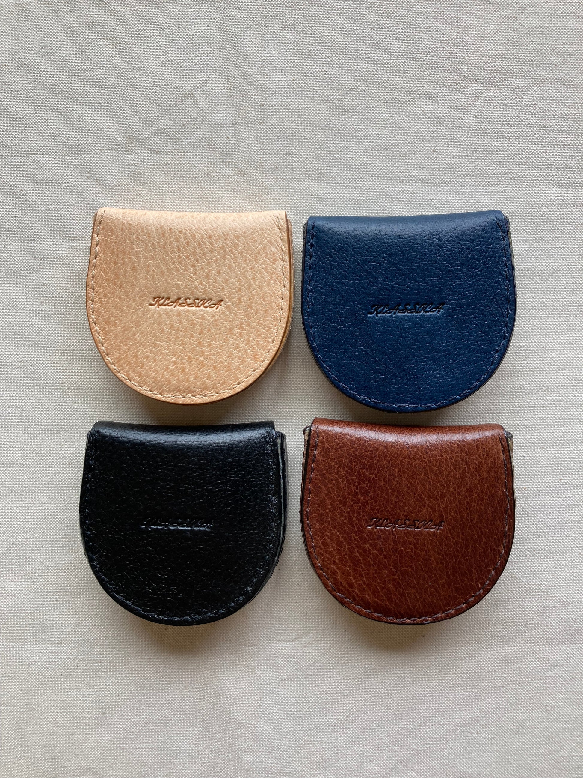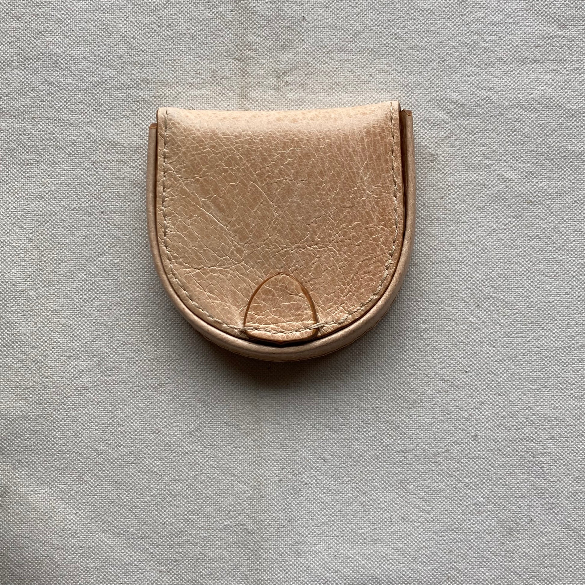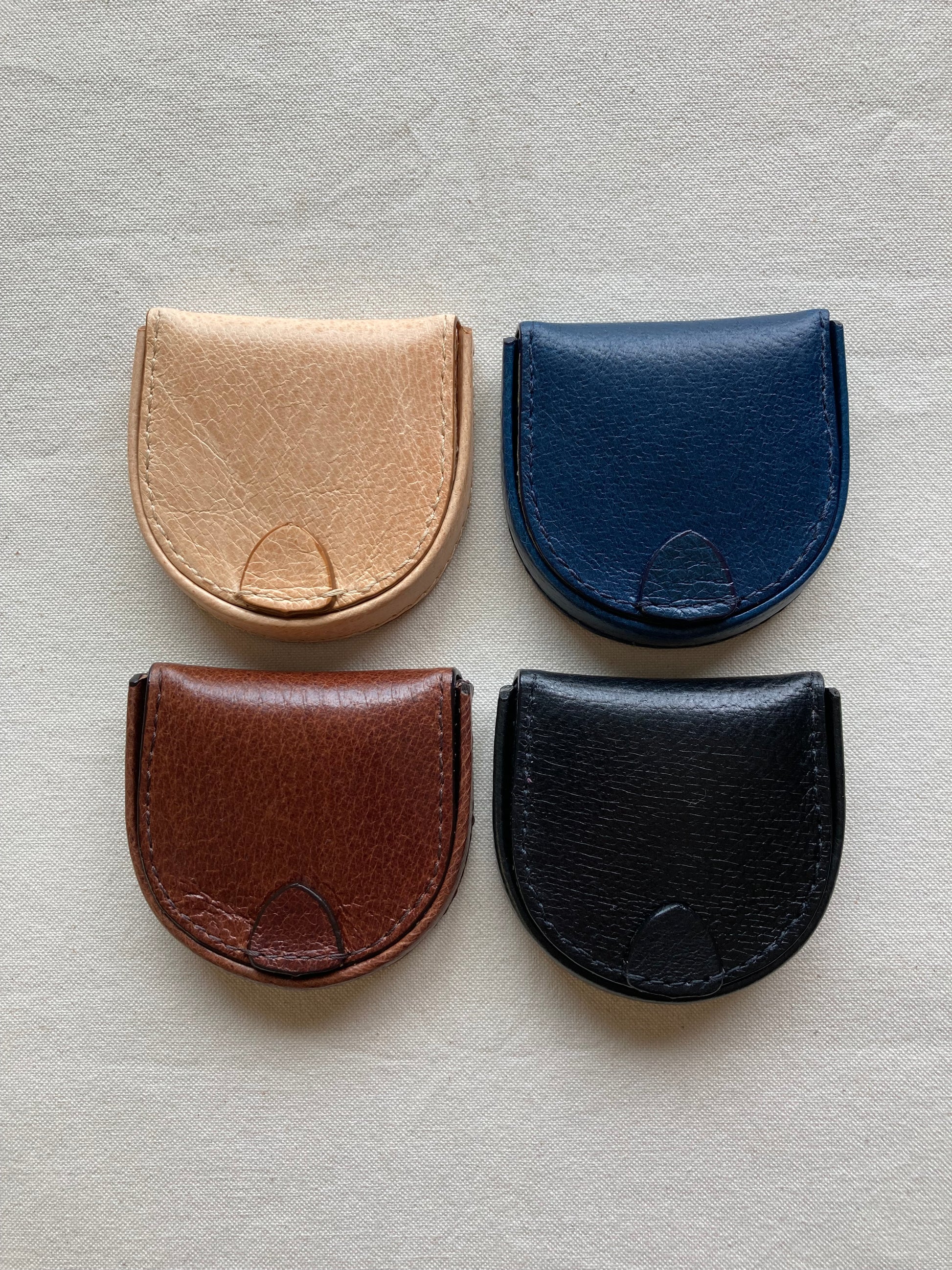 馬蹄型のコインケース。懐かしい昔ながらのオーソドックスなデザイン。コインの収納量は20~30枚程で手のひらサイズのコンパクトさが特徴です。紙幣を8ッ折にして蓋ポケットに収めることも出来ます。