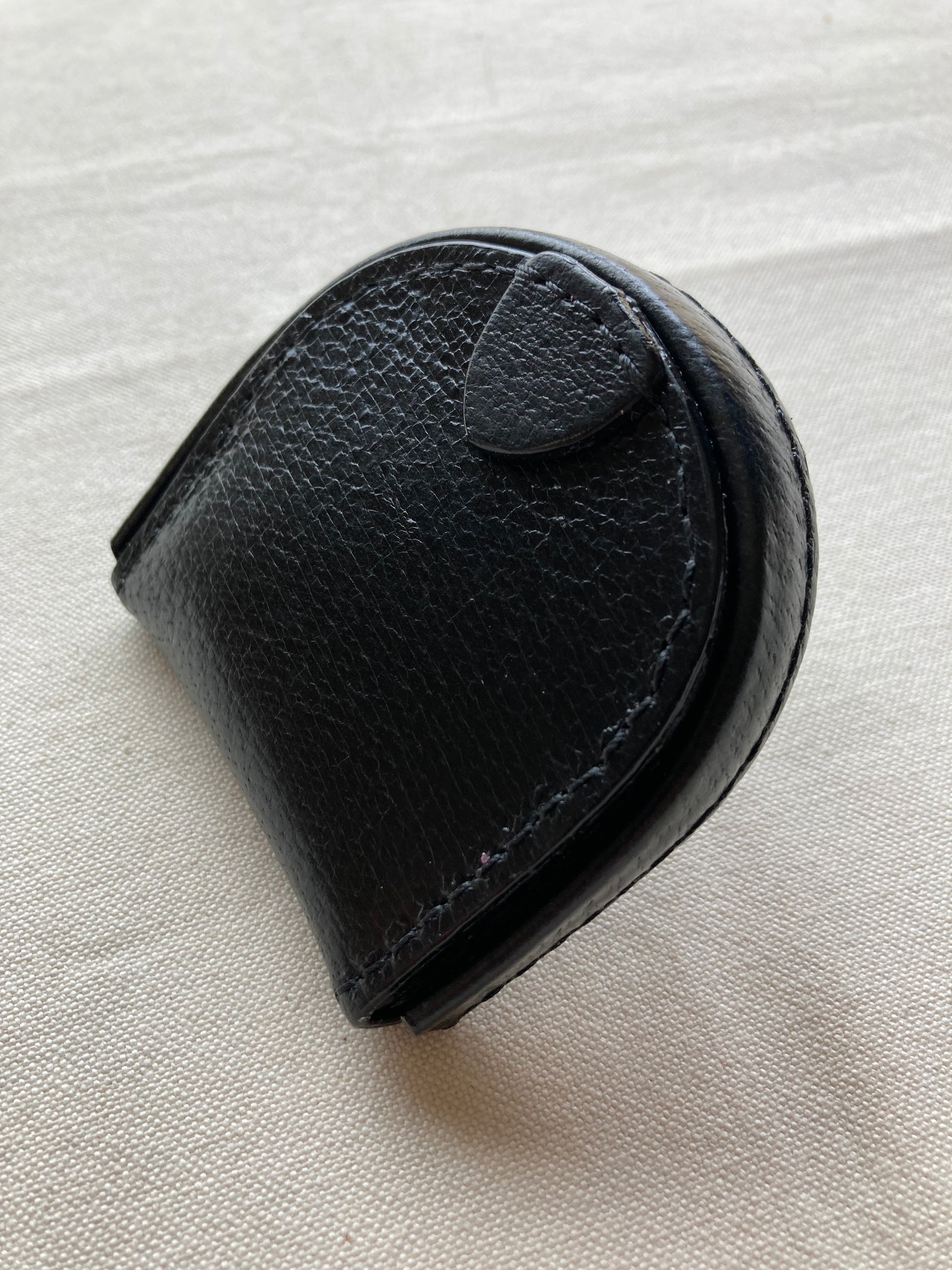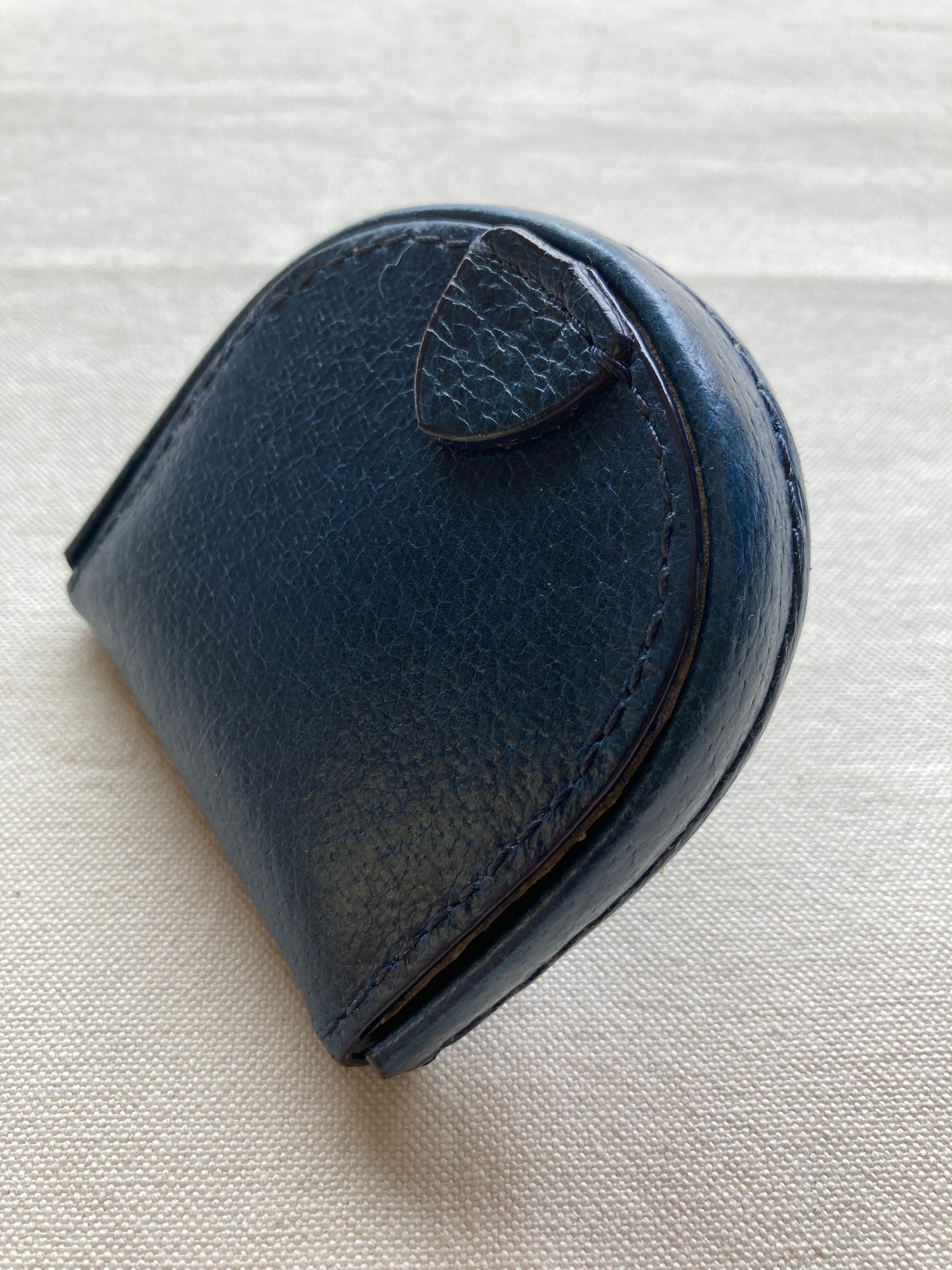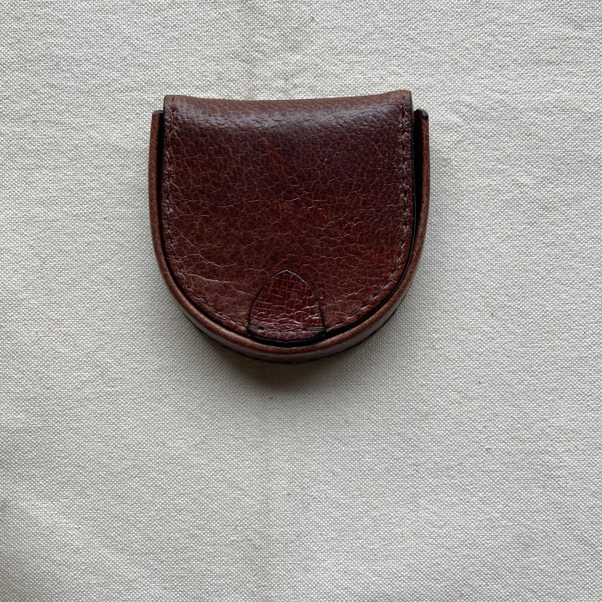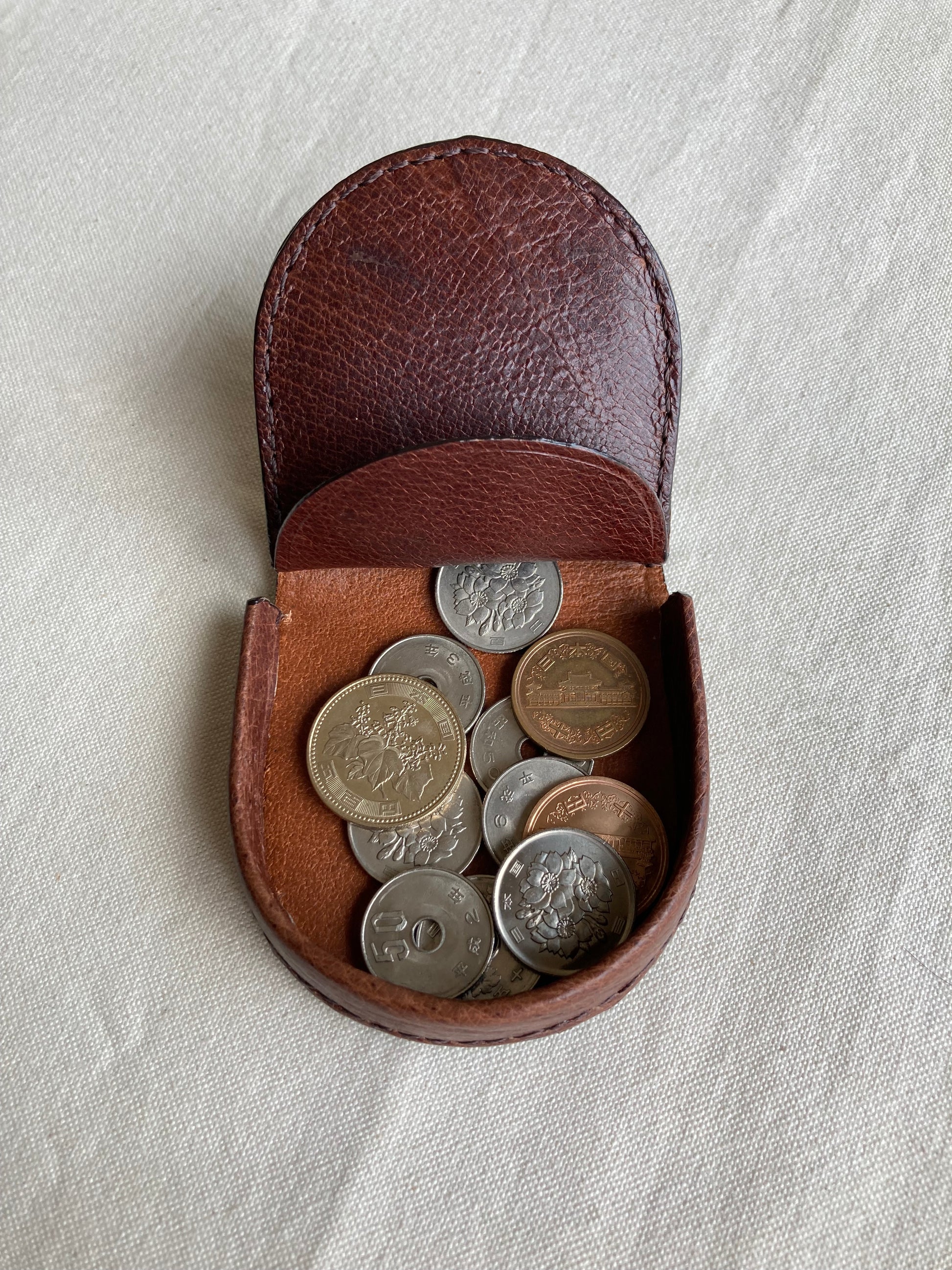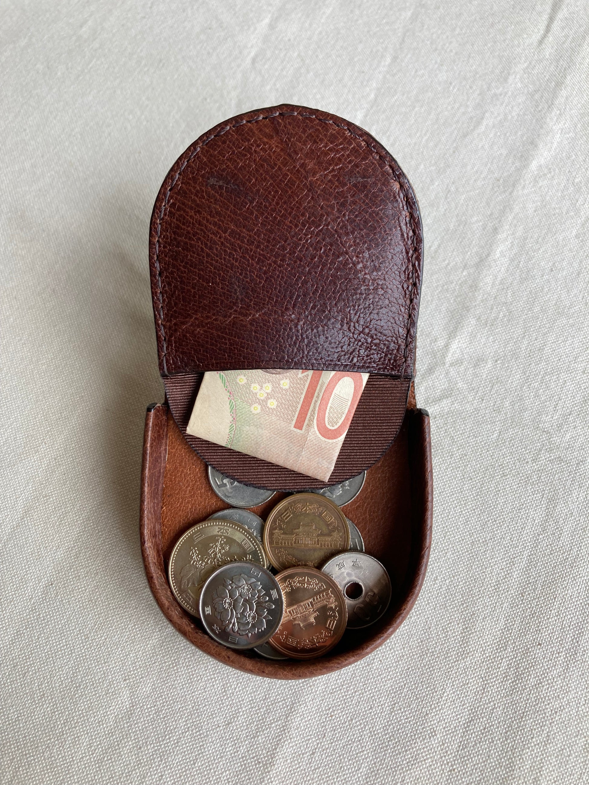 馬蹄型のコインケース。懐かしい昔ながらのオーソドックスなデザイン。コインの収納量は20~30枚程で手のひらサイズのコンパクトさが特徴です。紙幣を8ッ折にして蓋ポケットに収めることも出来ます。