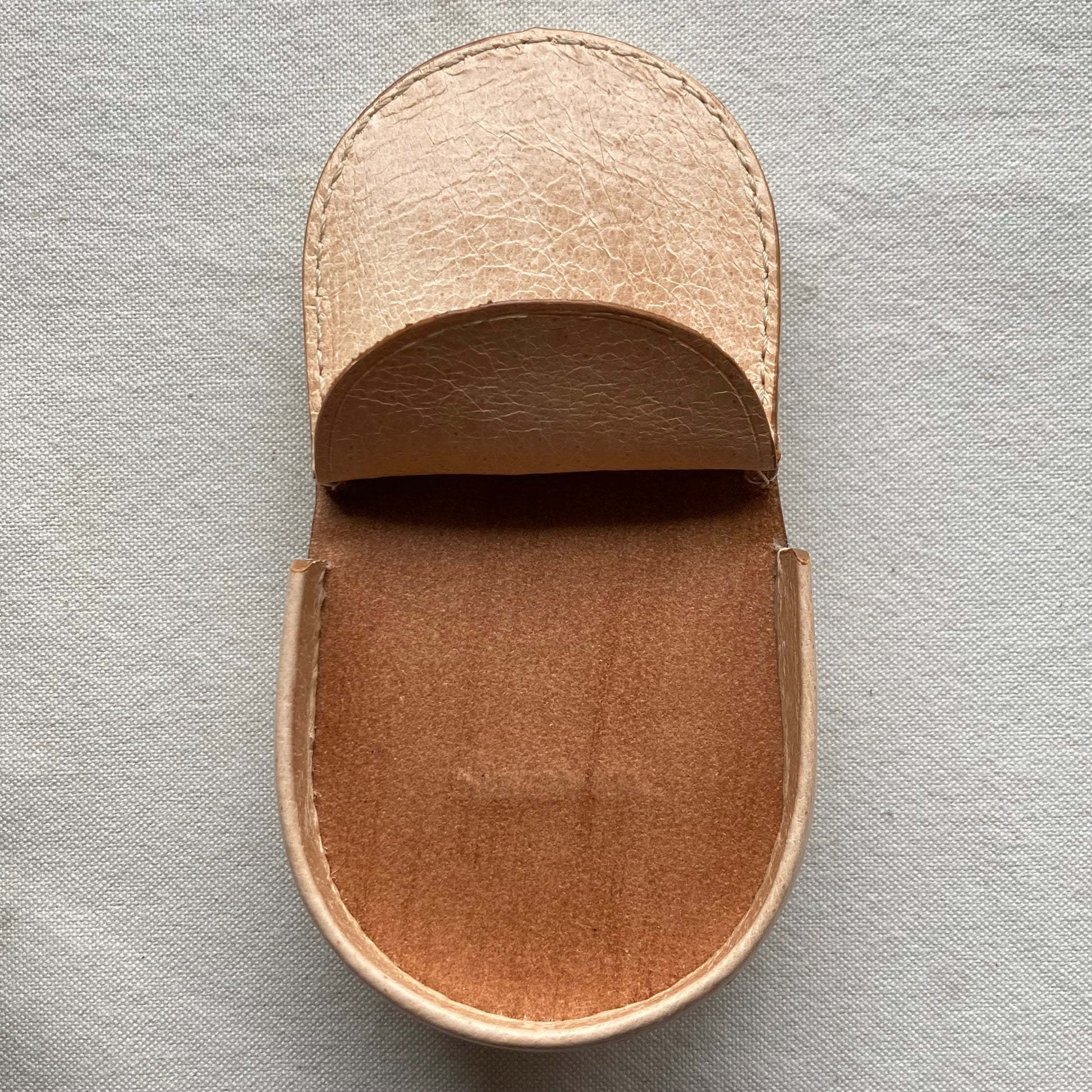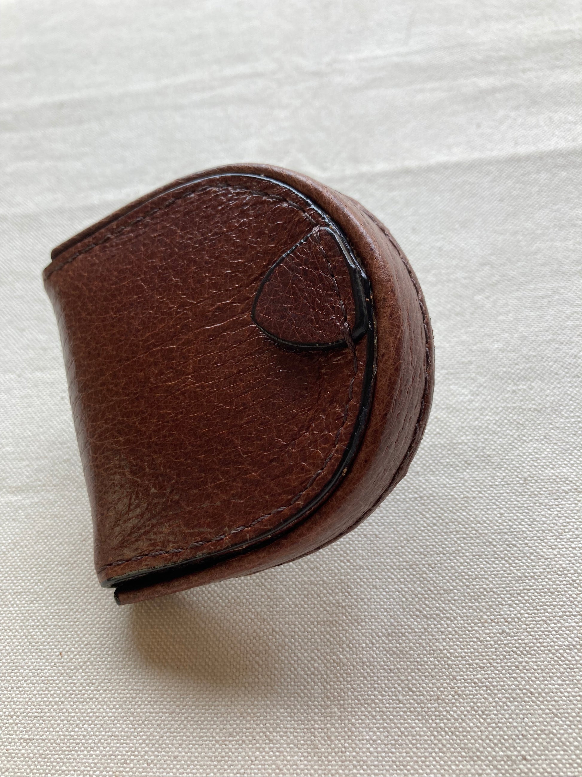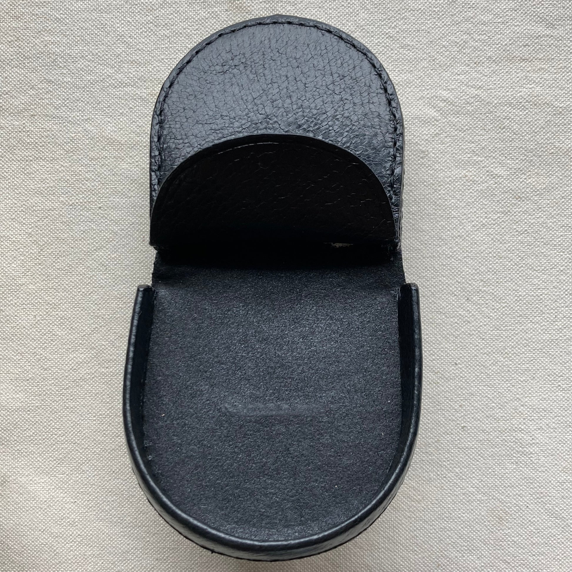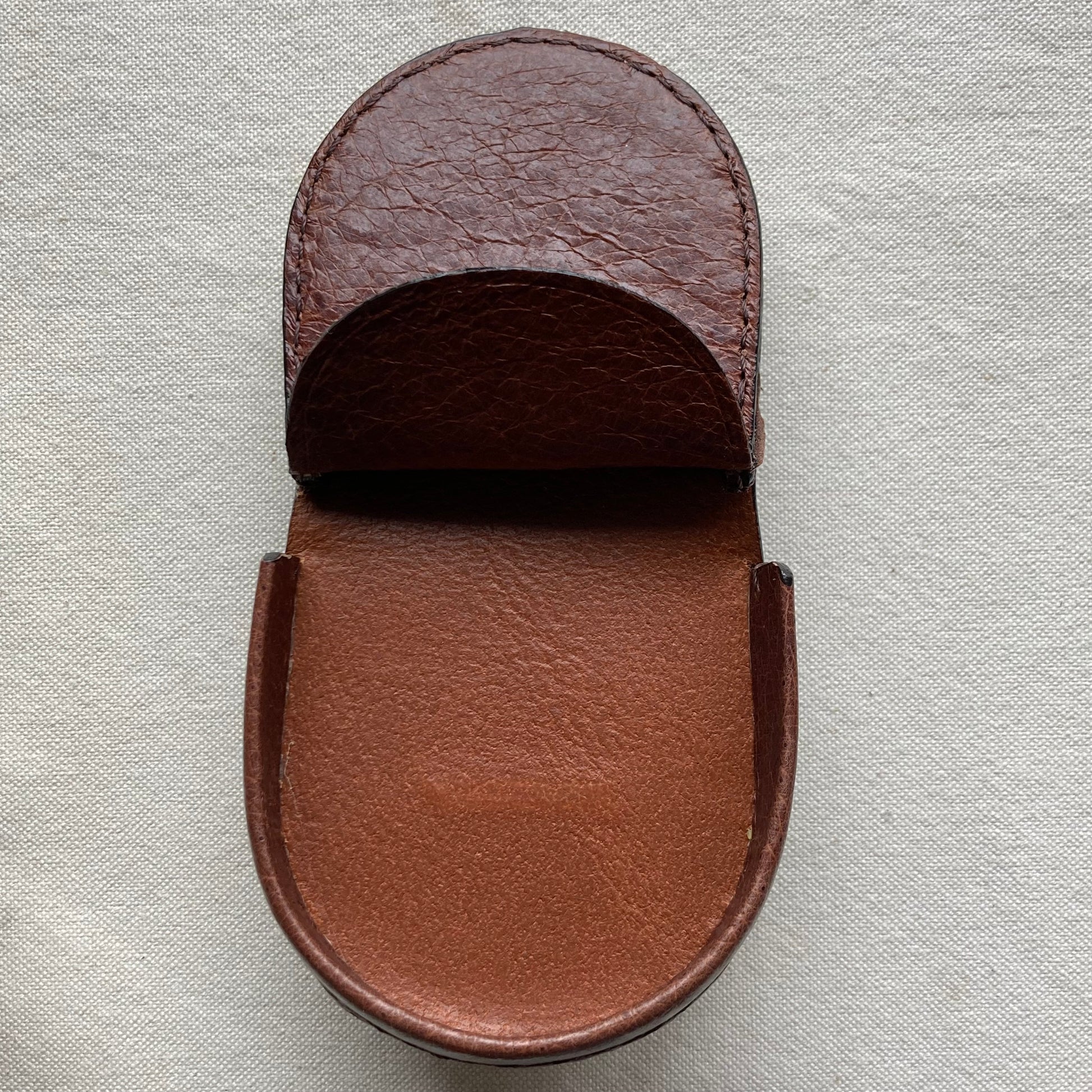 馬蹄型のコインケース。懐かしい昔ながらのオーソドックスなデザイン。コインの収納量は20~30枚程で手のひらサイズのコンパクトさが特徴です。紙幣を8ッ折にして蓋ポケットに収めることも出来ます。