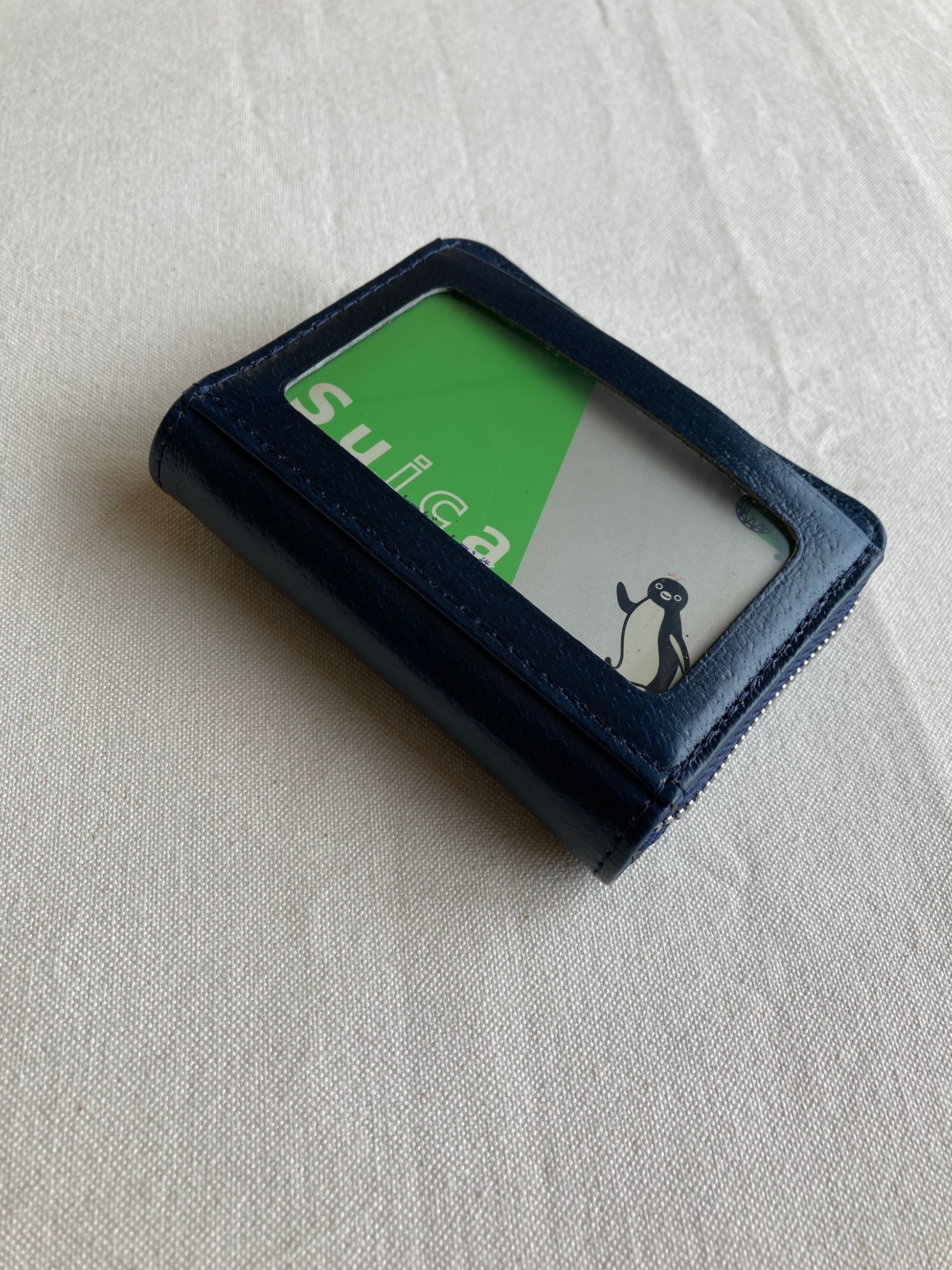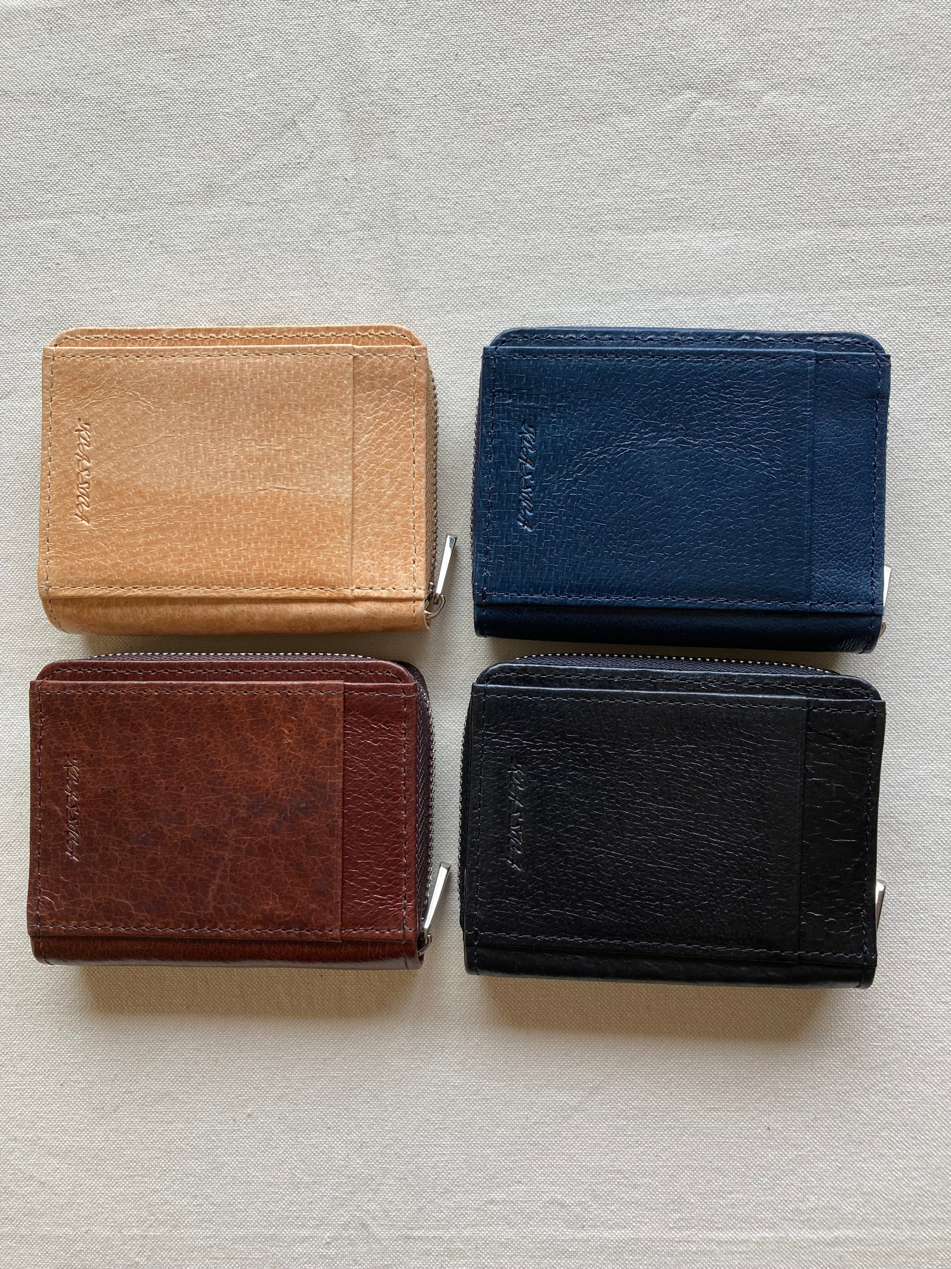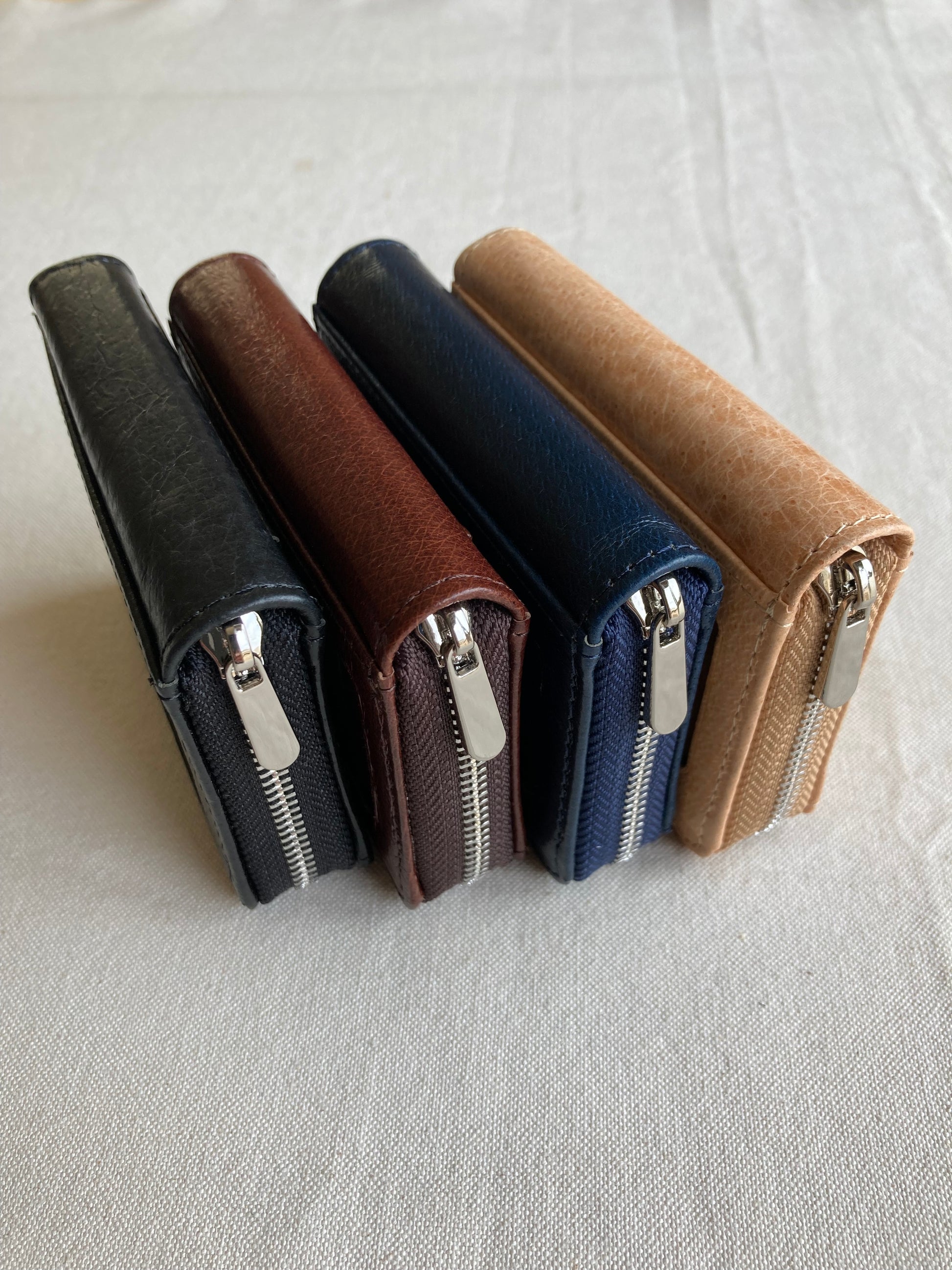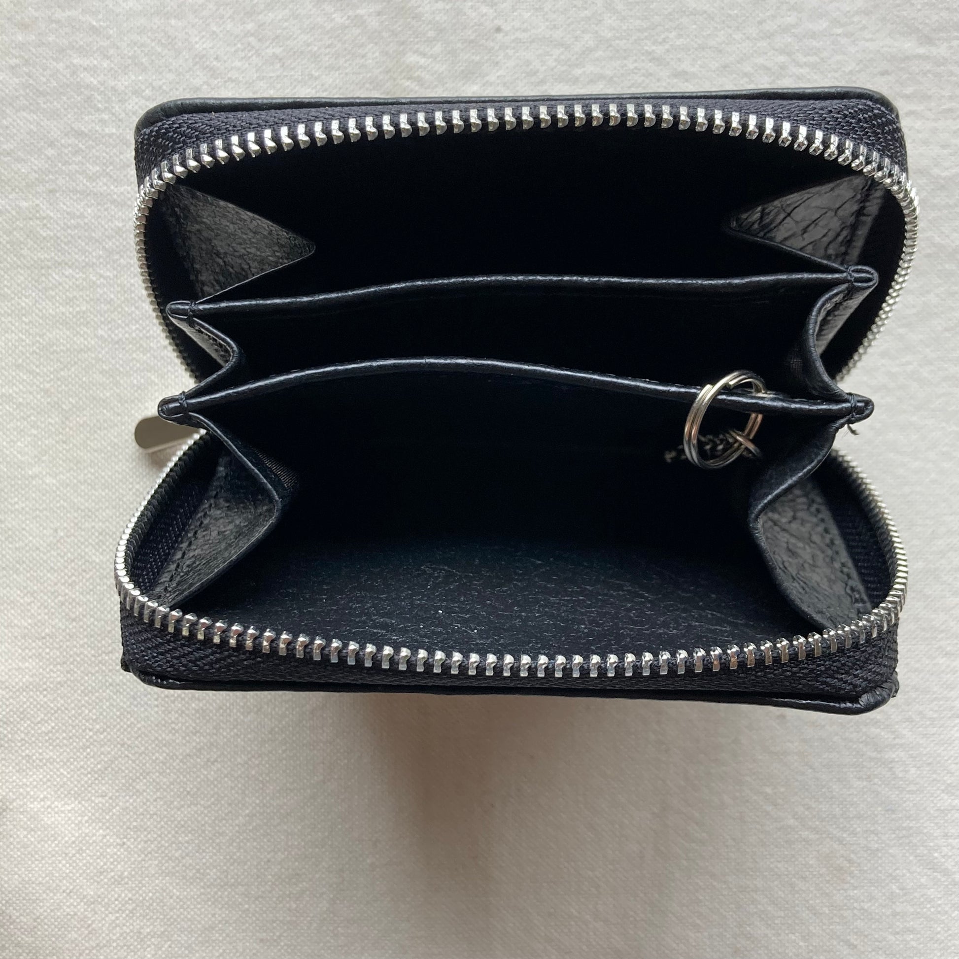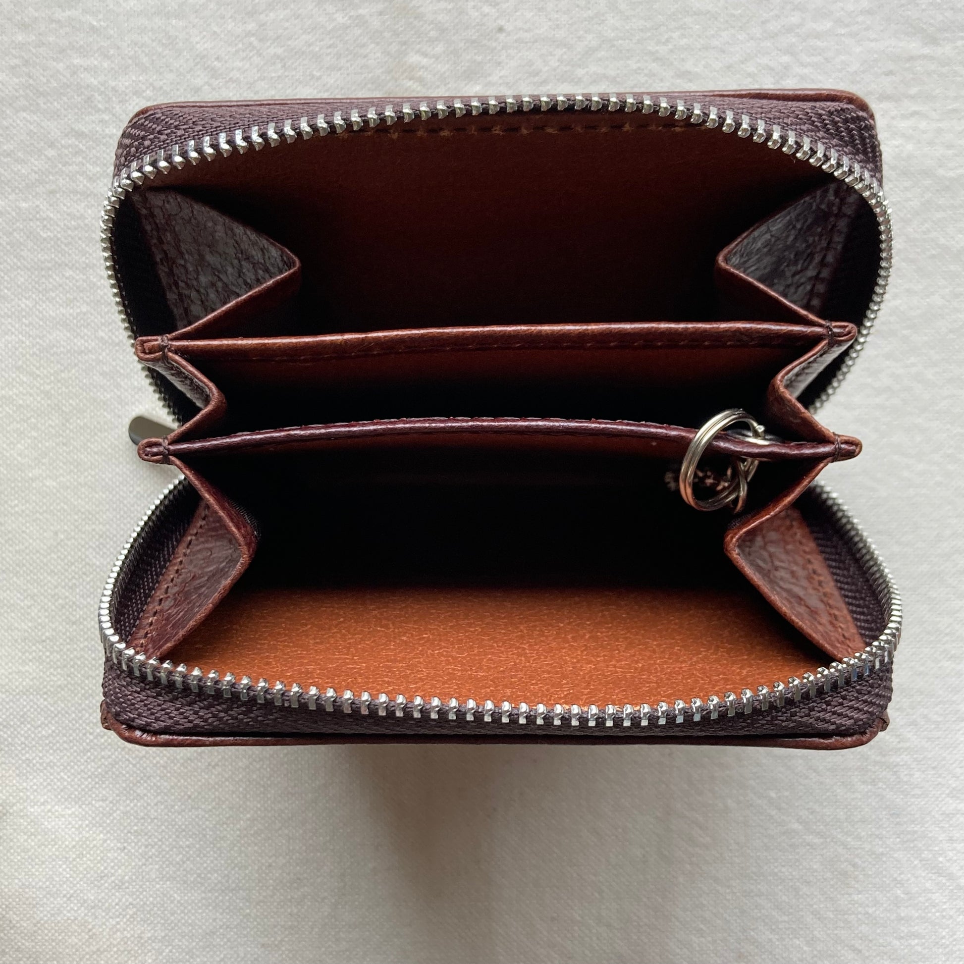 ラウンド3方ファスナータイプのコインケース。表側にセル窓のカードポケットともう一方側には2ッのカードポケット。内側は3ッのスペースに仕切られ、キーチェーンが1ッ付いています。小銭・折った紙幣とカードを分けて収納し、見やすさ取り出し易さが特徴です。