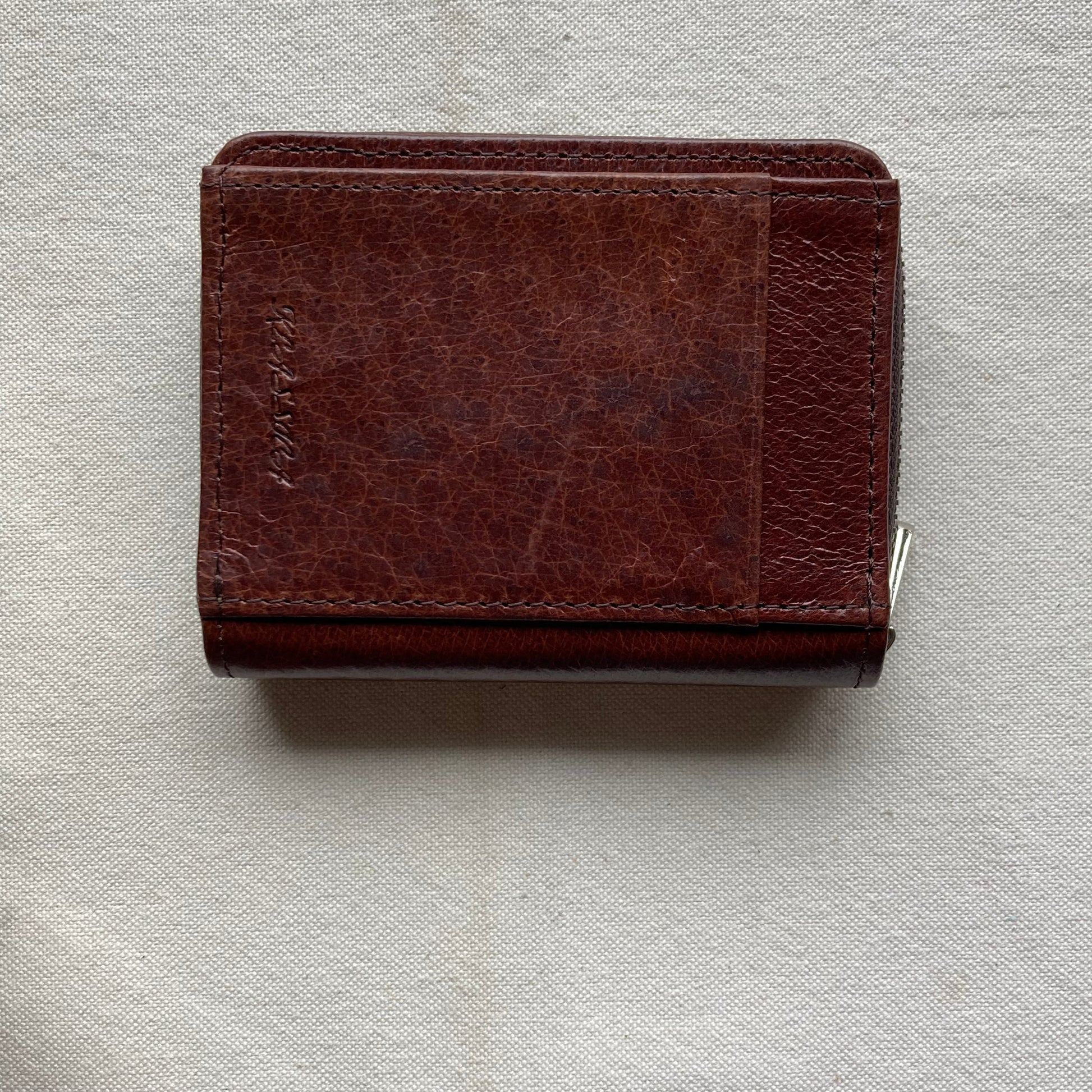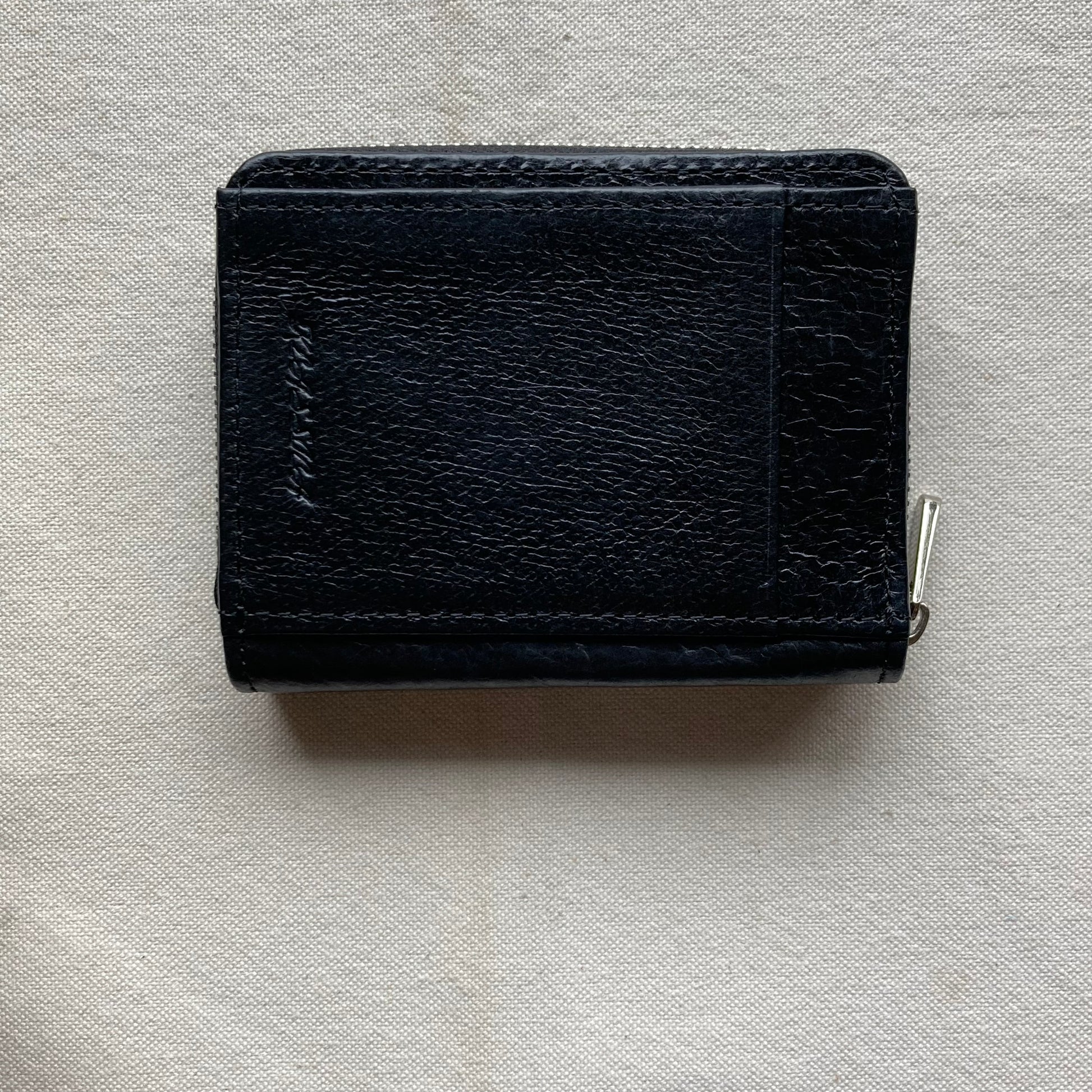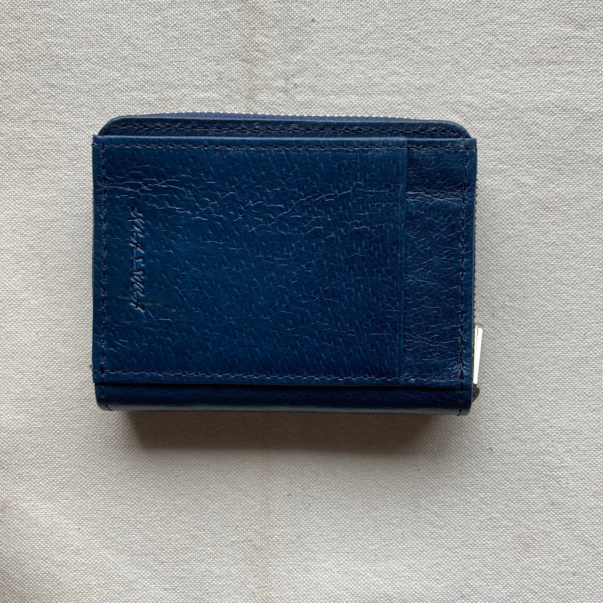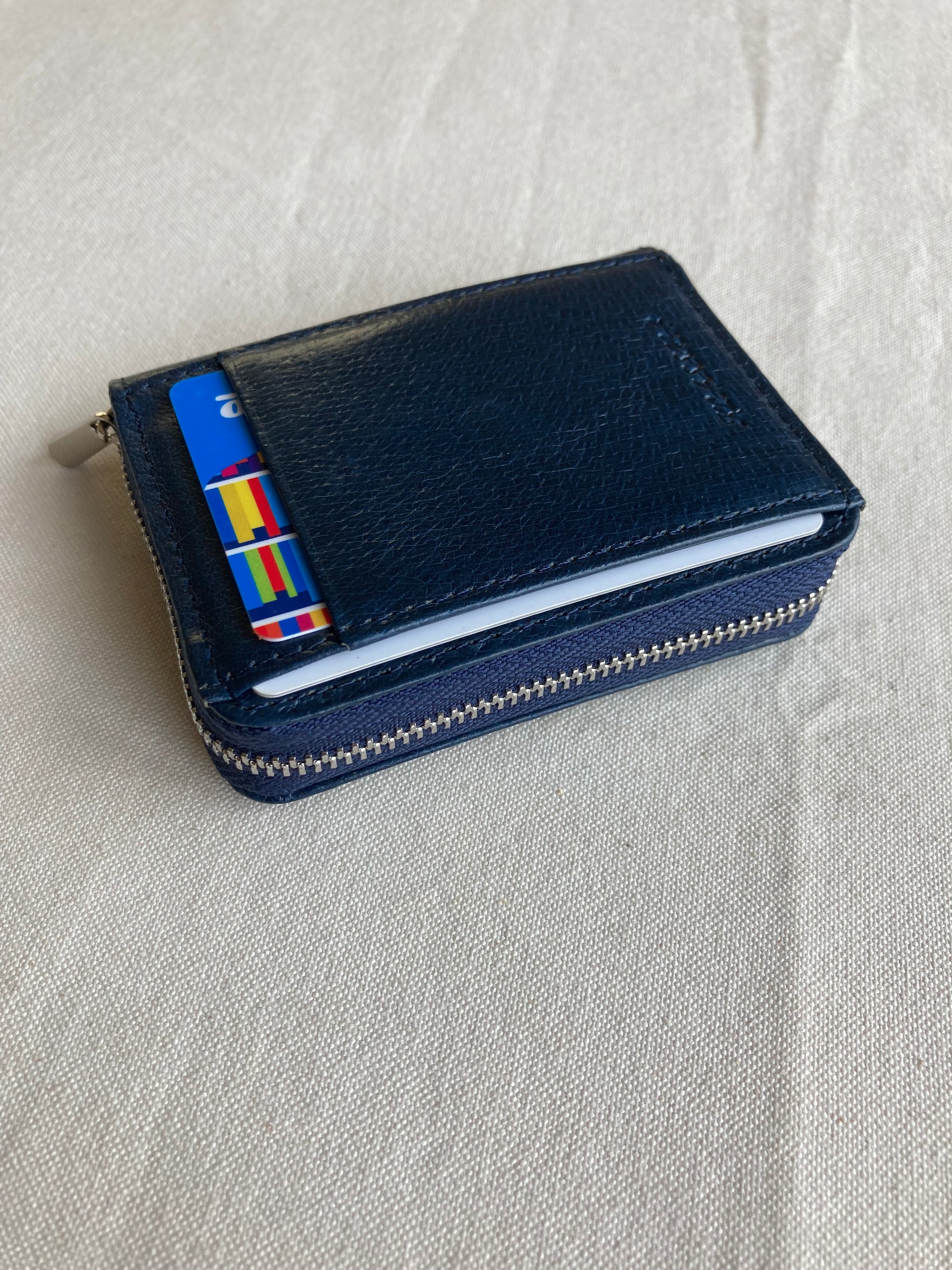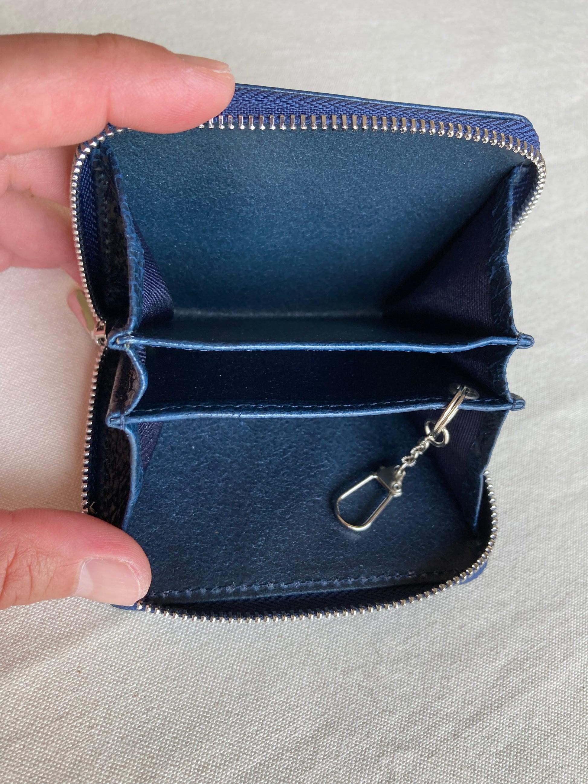 ラウンド3方ファスナータイプのコインケース。表側にセル窓のカードポケットともう一方側には2ッのカードポケット。内側は3ッのスペースに仕切られ、キーチェーンが1ッ付いています。小銭・折った紙幣とカードを分けて収納し、見やすさ取り出し易さが特徴です。